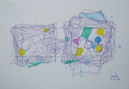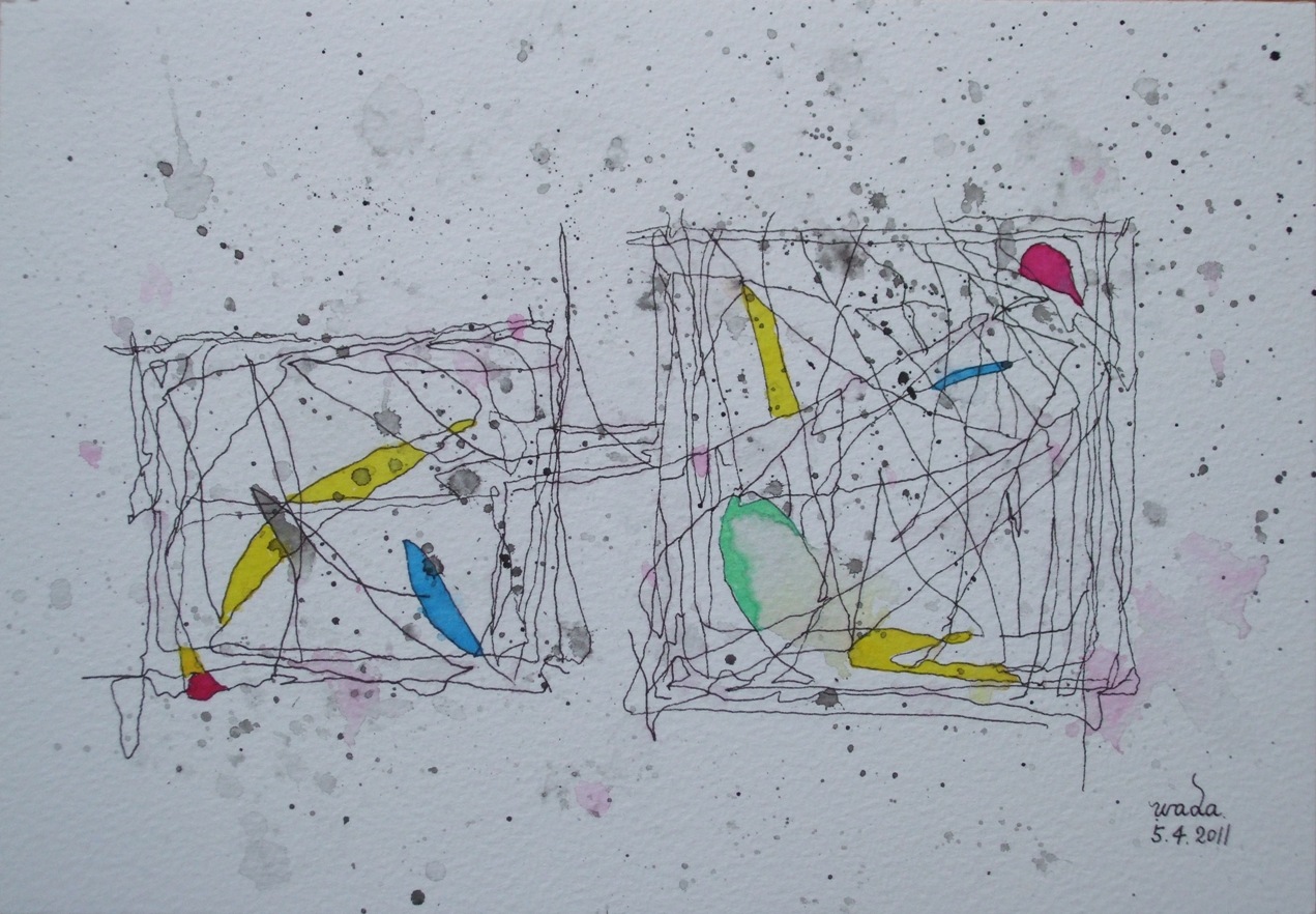Ballpoint pen and watercolour on paper, 10.0×13.5 in.