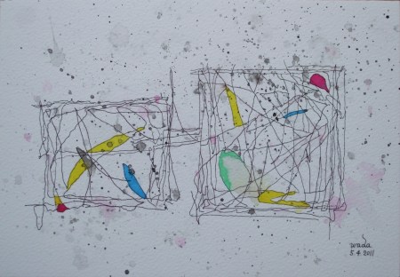 Stylo et aquarelle sur papier, 24.2×33.3 cm