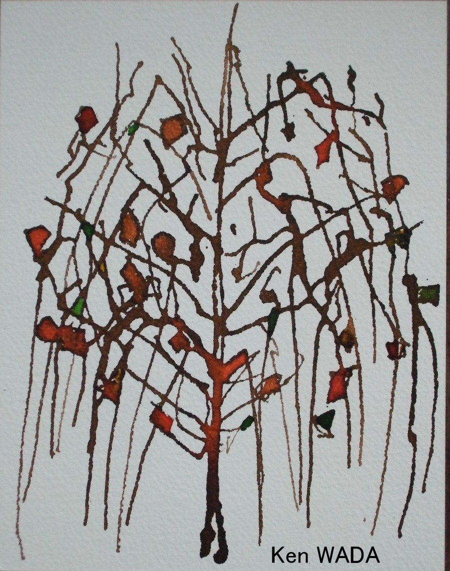 樹木への手紙 No.32、2010年12月 紙に液体水彩 14.0×17.8 cm